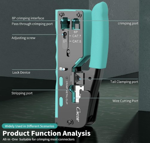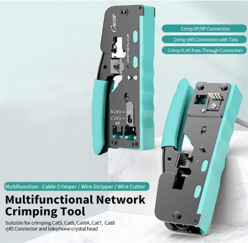 RJ45 Pass Through Crimp Tool, Ethernet Crimping Tool Kit All-in-one Crimper for Cat8 Cat7 Cat6 Cat5 8P RJ45 6P RJ11/12 Connectors < Read more >